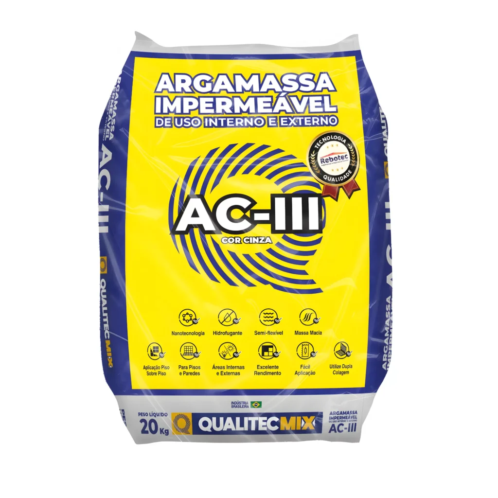 Argamassa da Rebotec perfeita para eliminar de vez os problemas de infiltração em rodapés e rebocos. Possui em sua formulação matérias-primas especiais que proporcionam boa trabalhabilidade e excelente retenção de água, que resultam em um revestimento impermeável e resistente. Disponível em embalagens de 20 e 250 kg